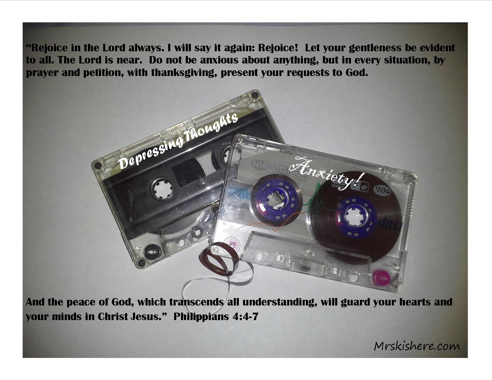 My personal collection includes two hit tapes, “Depressing Thoughts,” and “Anxiety!”  I have found that it doesn’t help to stop playing a negative tape.  What needs to happen is a replacement recording.